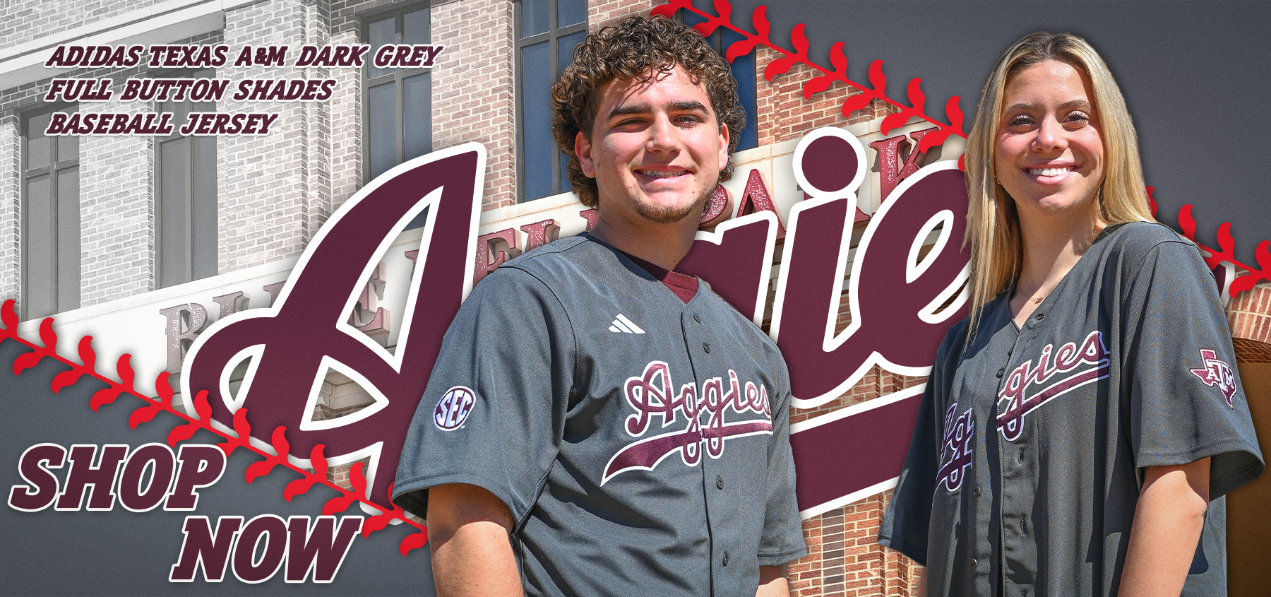 Adidas Texas A&M Dark Grey Full Button Shades Baseball Jersey